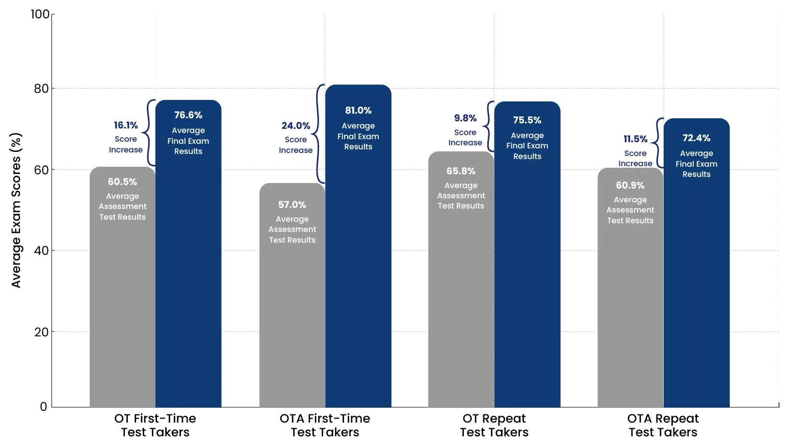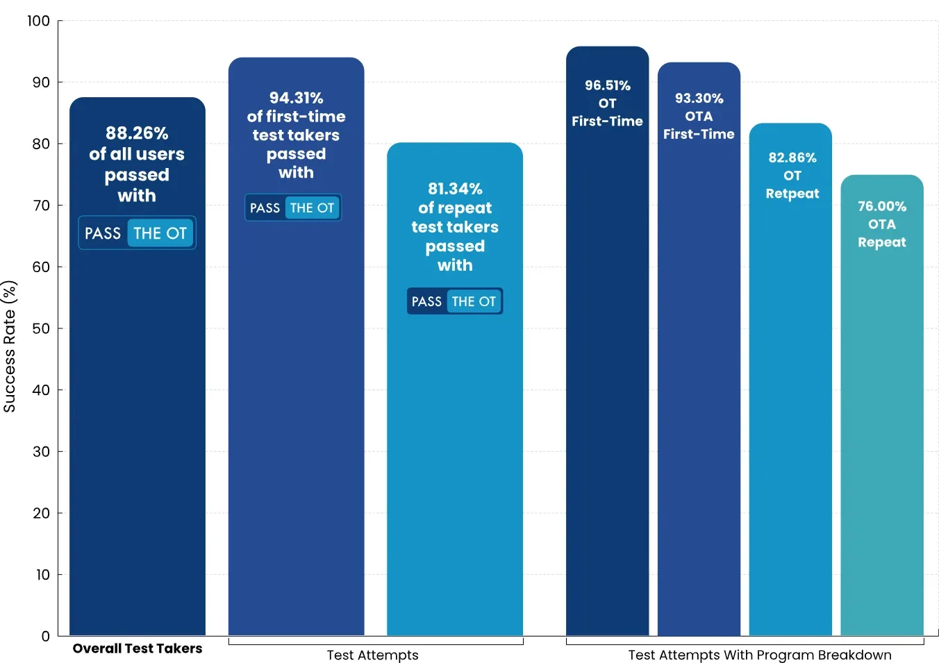 Results are self-reported by both repeat and first-time test takers after completing their NBCOT® exam.